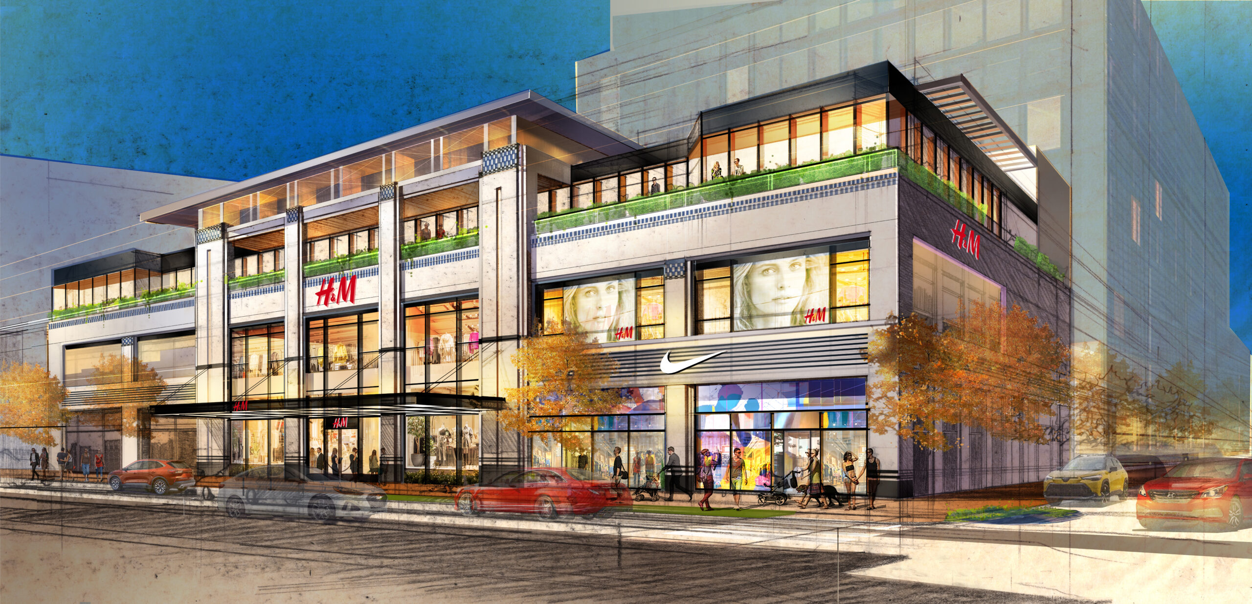 Though it evolved through numerous iterations, the design consistently drew from the same initial inspiration—a prototypical early 20th-century industrial-commercial building. In its final form, it merges that historical reference with the refined, contemporary aesthetic of the ARHAUS brand, resulting in a structure that both stands on its own and fits seamlessly within the evolving fabric of Greenville County Square.