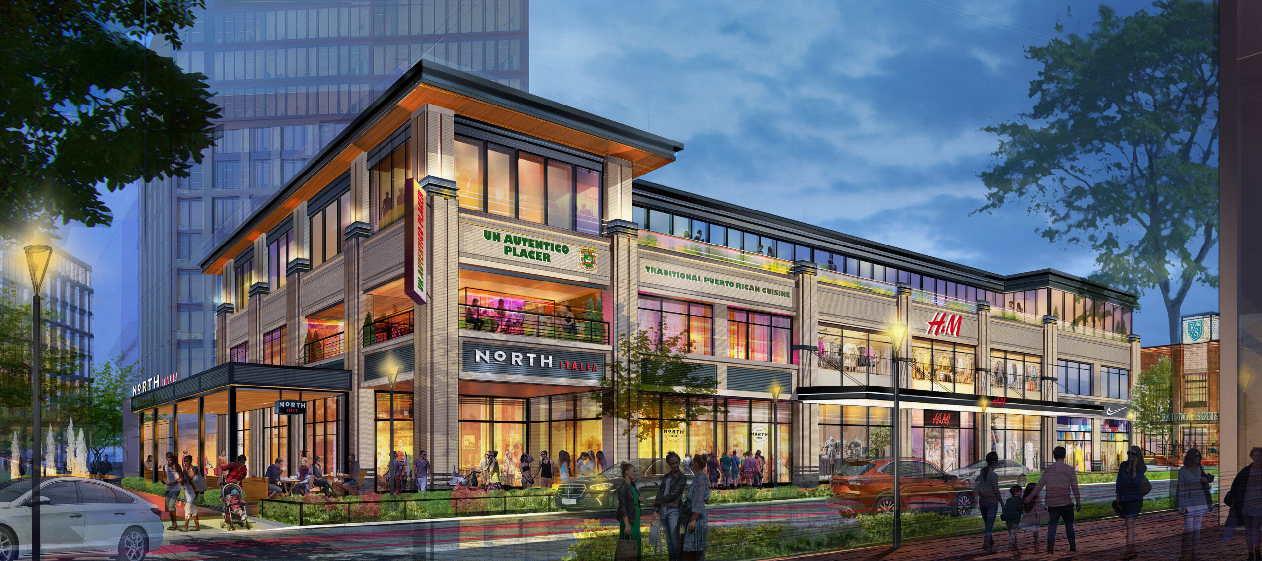 Located on the west side of the new Greenville County Square Development and fronting University Ridge, this three-story structure anchors a key intersection within the new mixed-use district. The program includes a two-level retail tenant at its core and western wing, a two-story restaurant at the opposite corner, and boutique office space with open terraces on the upper floor.