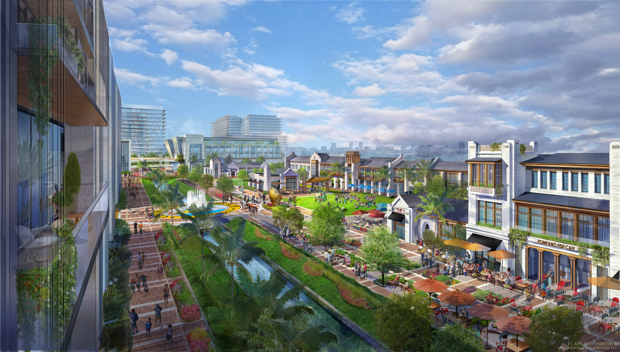 I was commissioned by RocaPoint Partners to help shape and visualize their vision for this emerging community. Working closely with the leadership team, I developed a conceptual design that reflects the cultural diversity of Pompano Beach while drawing on the regional character of South Florida. The renderings I produced became central to public presentations, fostering dialogue and helping residents envision their place in the city’s evolving future.