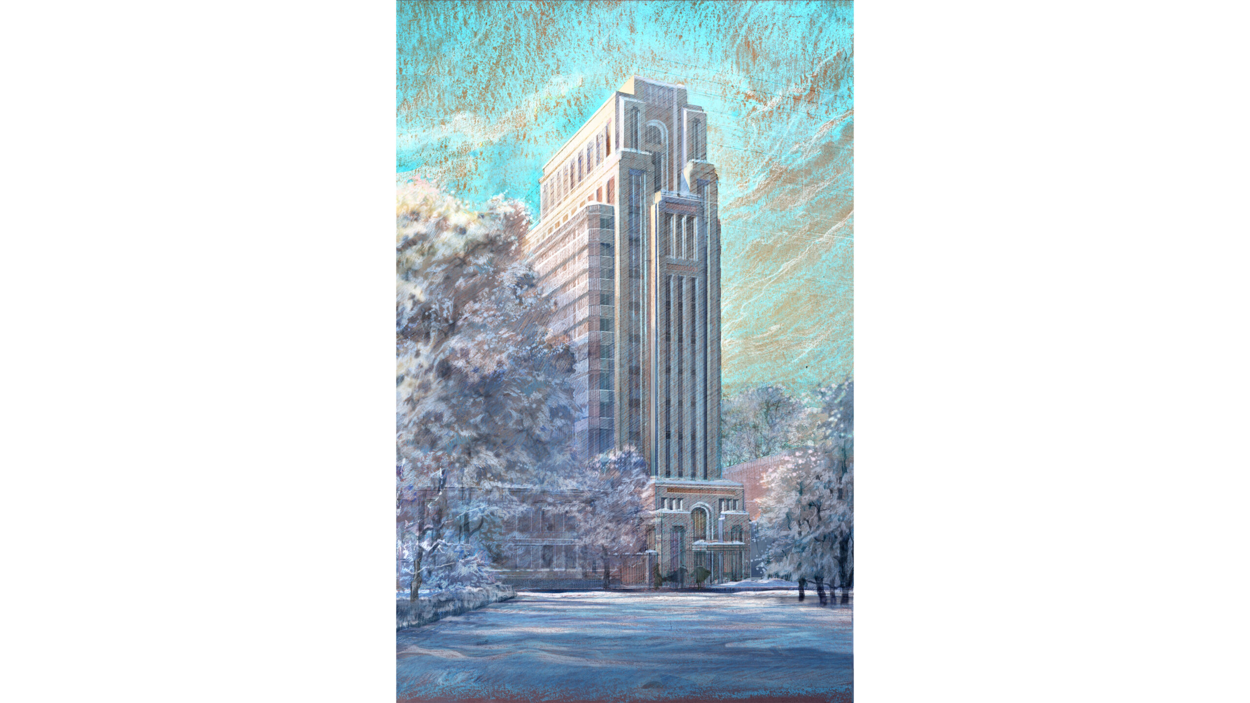 This project, a 16-story residential tower located in one of Moscow’s most prestigious historic neighborhoods, was developed as an invited competition entry. The program includes 60 luxury residences, underground parking, a private landscaped courtyard, and a boutique hotel housed within an adjacent restored 1830s bank building.
